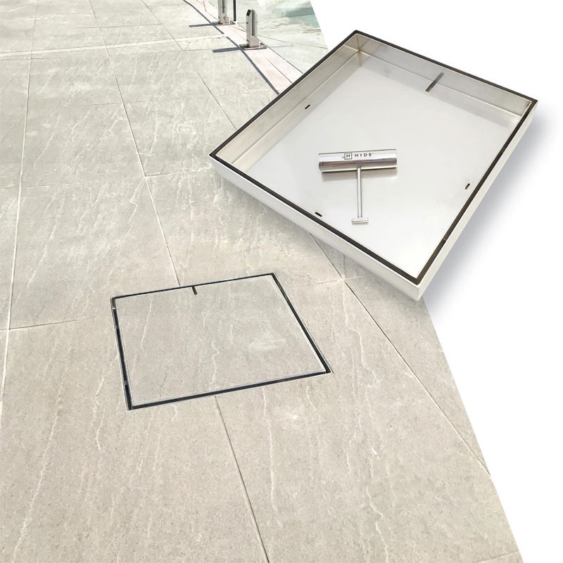 HIDE Drain Covers allow your chosen landscape material to seamlessly conceal the drain access by doing away with standard metal or plastic grates.