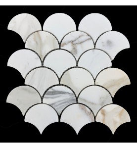 Calacatta Oro Gold Fish Scale Fan Shaped Honed Marble Mosaic