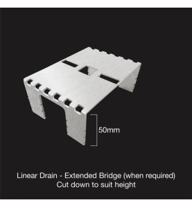 Each section of the HIDE 1210 drain cover has 5 identical 20mm high bridges supporting the HIDE Cover. When extra height is required, 50mm high bridges can be purchased and cut down to required height.