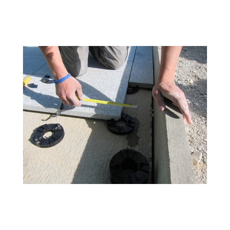 TERRA LEVEL® pedestals can be used for all build-up heights and adjustments of incline. Build-up is reached through stacking the pedestals. The products fit into each other with a 90° turn - therefore an optimal stability can be achieved.